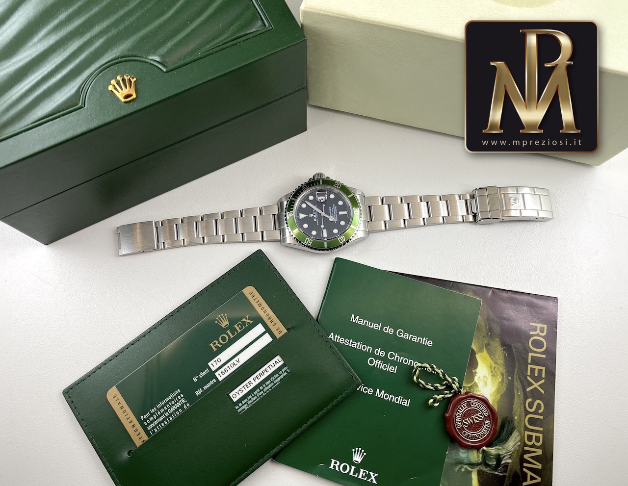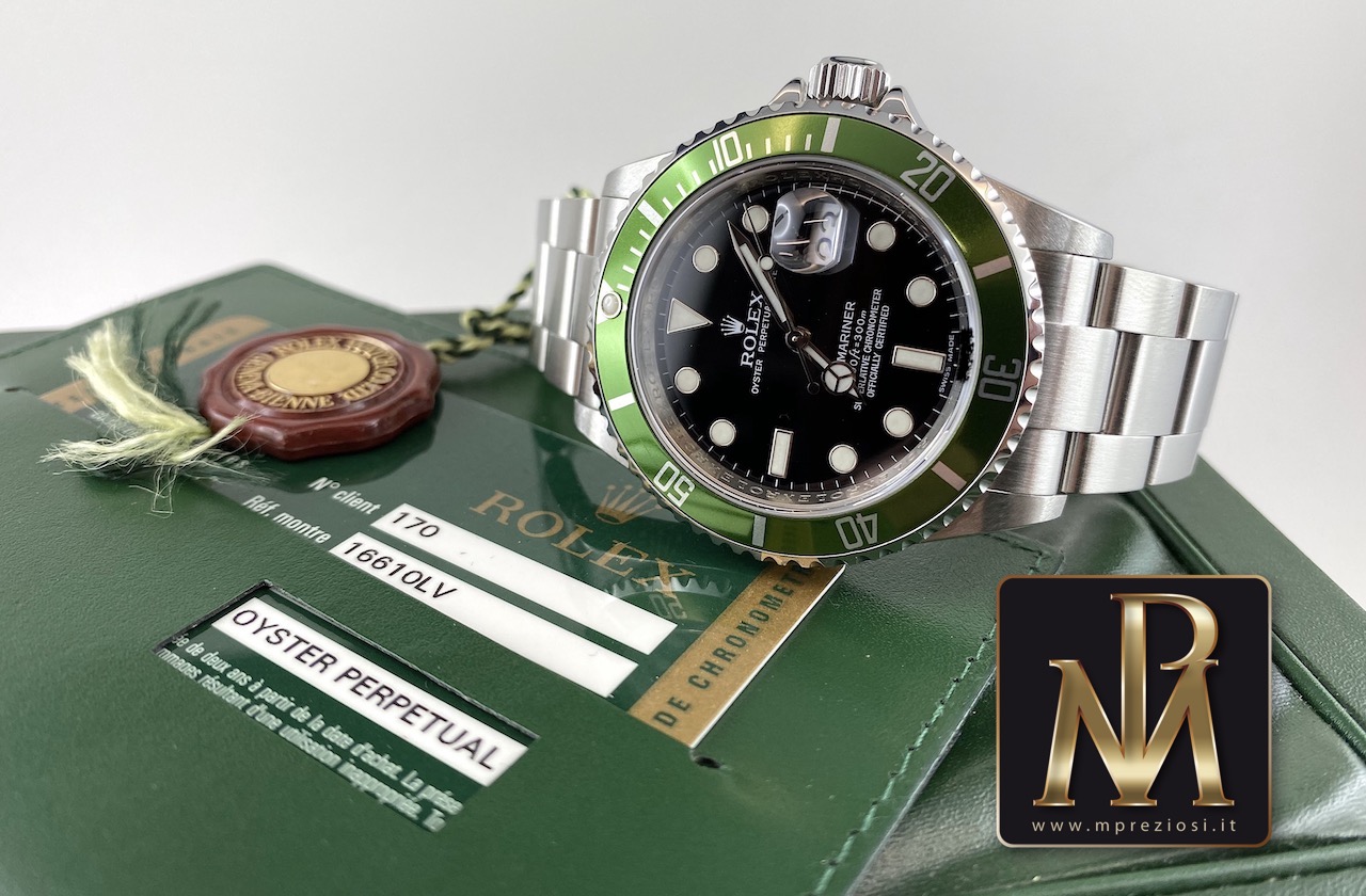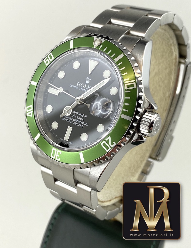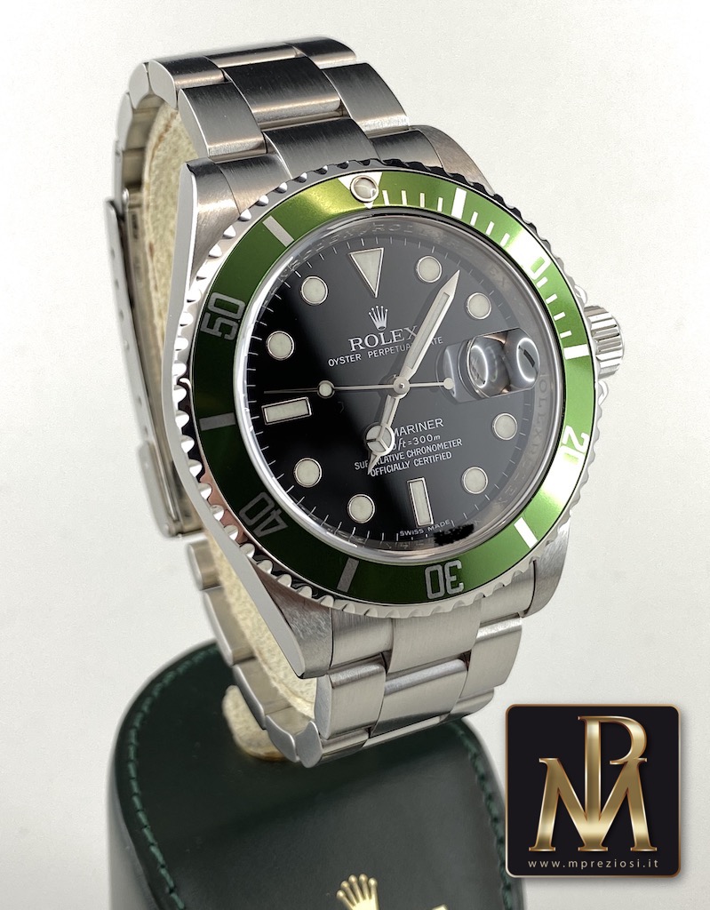 Proponiamo un bellissimo Rolex Submariner 16610 aka “ghiera verde o kermit” del 2008 quindi RRR.